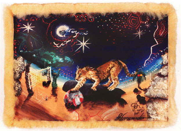 Einige Werke sind reliefartig gestaltet, manche mit phosphoreszierenden Leuchteffekten im Dunkeln, andere mit Glitzer und Glimmer oder echtem Meersand. Passend zum Motiv sind die Kindergemälde mit einem außergewöhnlichen Rahmen versehen, beispielsweise mit flauschigem Schaffell; weichen Pelz (Nerz); Muscheln; Seil oder Federn.